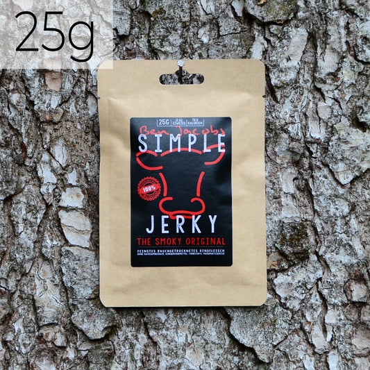 Simple Jerky inneholder over 45% protein og mindre enn 5% fett. I tillegg inneholder det ingen kjemiske tilsetningsstoffer.